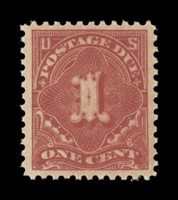 1608 ogu J38 image#J38, 1c Deep claret, excellent centering within uncommonly large margins, strong rich color and a crisp impression on bright white paper, o.g., lightly hinged, extremely fine and choice; 2006 PSE certificate (XF-Superb 95; SMQ $39.00). (Image) $15.00