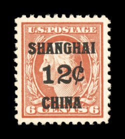 1624 nhu K6 image#K6, 12c on 6c Red orange, an extraordinarily attractive and choice mint example, marvelously well centered within exceedingly large margins, brilliant color and a clean impression on fresh white paper, flawless o.g., n.h., an extremely fine gem; 2004 PF certificate and a 2005 PSE certificate (XF-Superb 95; SMQ $1,350.00). (Image) $220.00