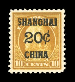 1627 nhu K10 image#K10, 20c on 10c Orange yellow, excellent centering amid very large margins, especially deep intense color and impression on bright white paper, pristine o.g., n.h., extremely fine and quite choice; 2005 PSE certificate (XF 90; SMQ $405.00). (Image) $160.00
