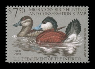 1727 nhu RW49 image#RW49, 1982 $7.50 Multicolored, an exciting mint single that is one of only three examples graded Gem 100 by the PSE, exceptionally large and perfectly balanced margins all around, gorgeous rich colors and crisp impressions on bright white paper, o.g., n.h., superb gem; 2004 PSE certificate (Gem 100; SMQ $160.00 for 98, not priced as 100). (Image) $15.00