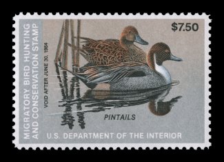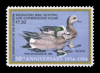 1729 nhu RW51 image#RW51, 1984 $7.50 Multicolored, and yet another superlative stamp, being absolutely perfectly centered, plus its color is exceptionally bright and fresh on pristine white paper, o.g., n.h., superb; 2004 PSE certificate (Gem 100; SMQ $140.00 for 98, not priced in this grade); one of just six stamps to achieve the prestigious Gem 100 grade. (Image) $15.00