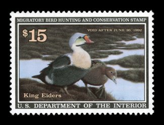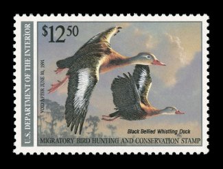 1736 nhu RW58 image#RW58, 1991 $15.00 Multicolored, extraordinarily well centered within exceedingly large margins, deep rich colors on pristine white paper, o.g., n.h., extremely fine gem; 2005 PSE certificate (Superb 98; SMQ $165.00); the highest grade assigned to this stamp. (Image) $27.50