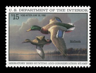 1740 nhu RW62 image#RW62, 1995 $15.00 Multicolored, remarkably well centered within large margins, wonderfully fresh, o.g., n.h., extremely fine gem; 2004 PSE certificate (Superb 98; SMQ $165.00); the highest grade given to this stamp. (Image) $27.50