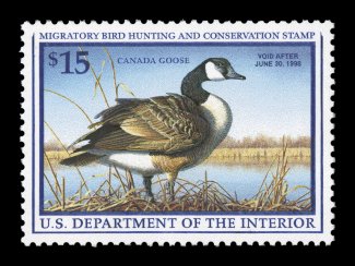 1743 nhu RW65 image#RW65, 1998 $15.00 Multicolored, perfectly centered within very large margins, strong rich color on immaculate paper, o.g., n.h., superb; 2005 PSE certificate (Gem 100; SMQ $145.00 for 98, not priced in this grade); one of only four copies to receive this ultimate grade. (Image) $30.00
