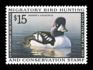 1744 nhu RW66 image#RW66, 1999 $15.00 Multicolored, exceptionally well centered within extravagantly large margins, beautiful rich colors on especially bright paper, o.g., n.h., extremely fine gem; 2004 PSE certificate (Superb 98; SMQ $130.00). (Image) $25.00