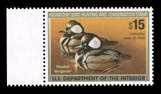 1750 nhu RW72 image#RW72, 2005 $15.00 Multicolored, gem left sheet-margin single, extravagantly large and perfectly balanced margins all around, gorgeous colors on immaculate paper, o.g., n.h., superb; 2005 PSE certificate (Gem 100; SMQ $85.00 for 98, unpriced as 100); the highest grade assigned to this stamp by the PSE. (Image) $22.50
