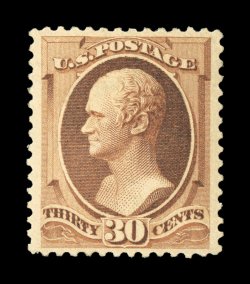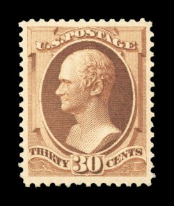 1071 ogu 217 image#217, 30c Orange brown, exceedingly well centered within wide margins, gorgeous color that is unusually rich and bright, strong detailed impression, o.g., lightly hinged, extremely fine; 1987 PF certificate and a 2005 PSE certificate (XF 90; SMQ $940.00). (Image) $475.00