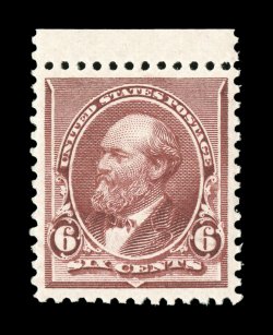 1079 nhu 224 image#224, 6c Brown red, an exceptional quality top margin mint single, marvelously well centered within uncommonly large margins, strong rich color and a highly detailed impression on extraordinarily bright paper, unblemished o.g., n.h., extremely fine; a true gem example; 2005 PSE certificate (XF-Superb 95; SMQ $2,400.00). (Image) $275.00