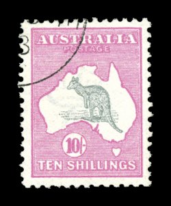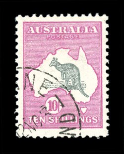 253 O 47w image#47w, 10/- Grey and pink, choice Brisbane c.t.o. example, exceedingly fresh, deep luxuriant colors on bright paper, large well balanced margins, full o.g., never hinged, extremely fine; Brisbane c.t.o. stamps are much scarcer than those cancelled in Melbourne, on which the ACSC catalog value is based; ex-Australia Post archives (A$1,000+). (Image) Est. 750-1,000