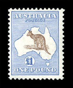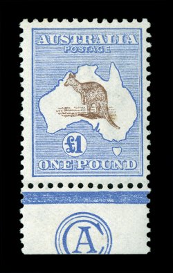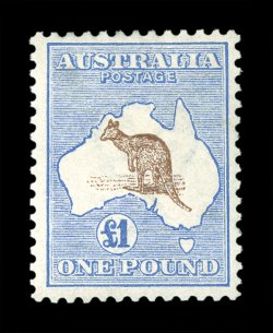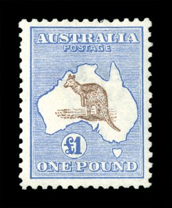 261 og 51 image#51, £1 Brown and blue, quite well centered. rich colors, o.g., barest trace of hinging, very fine and quite choice; signed lightly in pencil several times (A$3,000). (Image) Est. 750-1,000