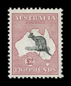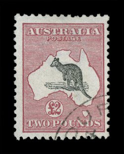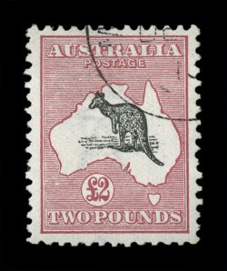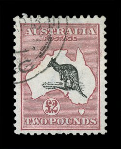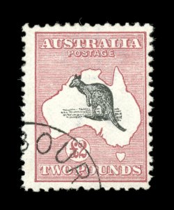 279 O 55w image#55w, £2 Black and rose, c.t.o. Melbourne (April 24, 1913) presentation postmark, strong rich colors, attractively centered, very fine (A$4,000). (Image) Est. 1,500-2,000