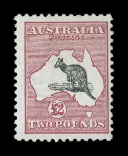 276 og 55 image#55, £2 Black and rose, quite fresh, deep luxuriant colors, o.g., barest trace of hinging (if at all), nearly very fine (A$7,000). (Image) Est. 1,500-2,000