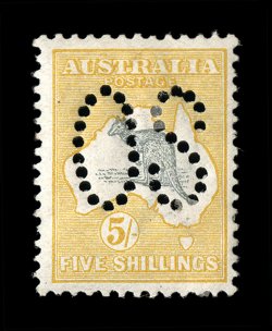 292 og/nh 1bc/42ba image#1bc/42ba, ½p to 5/- First Watermark issue, large "OS", a complete mint "set" to the 5/-, including both Die types on the 1p and 3p, all quite fresh and with rich colors, o.g., few with minor h.r., mostly l.h., with a few n.h., centering ranges from fine to very fine; scarce group (A$4,590). (Image) Est. 1,000-1,500
