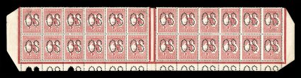 293 ogbl 2ba/z/za image#2ba/z/za, 1p Red, large "OS", a remarkable inter-panneau block of 24 (12 x 2), being the complete bottom two rows from Plate B, with left and right pane no monogram blocks, position R54 showing the "right frame retouched" variety, o.g., various flaws including some thin spots and perf. separations, nevertheless a rare large "OS" no monogram multiple; ex-Kilfoyle. (Image) Est. 500-750
