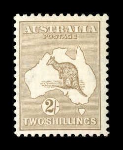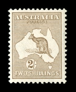 377 nh 36 image#36, 2/- Light brown, a brilliant "post office" fresh mint example, wonderfully well centered, rich color, pristine o.g., n.h., very fine and choice; an especially desirable and elusive stamp never hinged (A$4,000). (Image) Est. 2,000-3,000