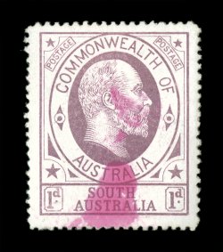 21 E E20C image#E20C, 1903 1p Purple Edward VII Powell essay, a similar design but in purple, pinkish stray ink on face (extraneous printer's ink?),otherwise very fine; one of four such essays recorded, this being the only one in purple; 1976 RPS certificate; ex-Field, Kilfoyle and Abramovich (A$4,000). (Image) Est. 2,000-3,000