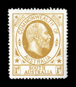 22 E E20D image#E20D, 1903 1p Ochre Edward VII Powell essay, a similar design but in ochre, diagonal crease at top left ending in a minute tear, very fine appearance; one of four such essays recorded, this being the only one in ochre; 1976 RPS certificate; ex-Field, Kilfoyle and Abramovich (A$4,000). (Image) Est. 3,000-4,000
