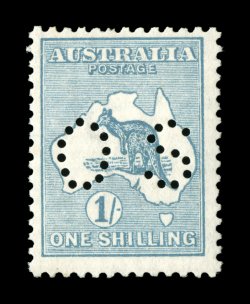 399 og 31Bba image#31Bba, 1/- Bright blue green, small "OS", fresh mint single, attractively centered, o.g., l.h., very fine (A$1,250). (Image) Est. 500-750
