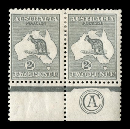 414 og 7zd image#7zd, 2p Grey black, Die I, fresh CA monogram horizontal pair from Plate 2 (lower), rich color, o.g., l.h., fine (A$450). (Image) Est. 200-300