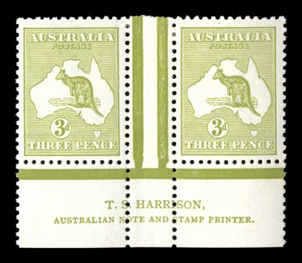row of perforations to right of gutter, very fine and rare (A$2,500). (Image) |