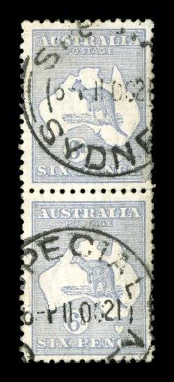 kangaroo's left leg, vertical pair, used, with the top stamp [2L17]