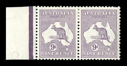 514 og 26a image#26a, 9p Violet, Die II, watermark inverted, left sheet-margin horizontal pair, well centered, rich color, o.g., h.r., one short perf. at top right, very fine (A$1,000). (Image) Est. 500-750