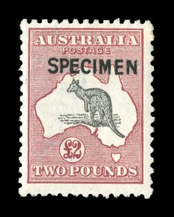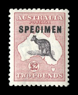 727 S 56xb image#56xb, £2 Purple black and rose, "SPECIMEN" type C overprint, gem example of this Specimen stamp, large well balanced margins, rich colors, o.g., barest trace of hinging, extremely fine (A$275). (Image) Est. 150-200