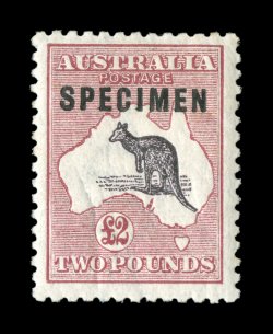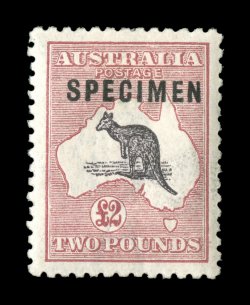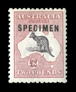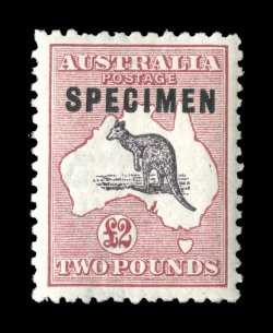 728 S 56xb image#56xb, £2 Purple black and rose, "SPECIMEN" type C overprint, well centered, rich colors, o.g., n.h., very fine (A$425). (Image) Est. 200-300