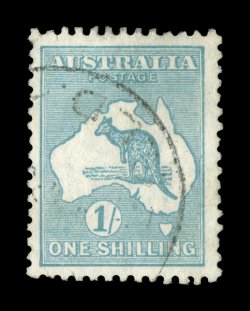 740 O 34a image#34a, 1/- Emerald, watermark inverted, an immensely rare used example of this important watermark error, being quite well centered and very lightly cancelled with an unobtrusive Queensland town c.d.s., couple of corner creases, one of which (at bottom left) ends in a minute marginal tear, of little consequence given that is is one of only three recorded examples, all of which are used, all three recorded examples have faults, this being the finest and best appearing of the three, very fine appearance; a key rarity of the issue, as well as one of the rarest stamps of the entire British Empire (A$20,000). (Image) Est. 15,000-20,000