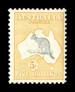 793 og 46 image#46, 5/- Grey and yellow orange, brilliantly fresh colors, o.g., l.h., nearly very fine (A$275). (Image) Est. 100-150