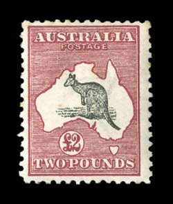 88 O 1w/55w image#1w/55w, ½p to £2 First Watermark issue, special 1924 Stockholm U.P.U. Congress Presentation set, a complete set of all 15 values, each being a single example with Melbourne c.t.o. postmarks believed to be dated December 5, 1913 (the 10/- to £2 values are much more elusive c.t.o. rather than with the more typical "Specimen" handstamps seen on collector's sets), this set was prepared for presentation to the delegates at the 1924 Stockholm U.P.U. Congress, being the first such presentation made by the Australian Post Office, accompanied by the original gold stamped presentation folder (which at one time also included a set of George V stamps), all without gum except a few values including the £1, all mostly fine-very fine, with the scarce £2 being particularly choice (as c.t.o. singles A$8,380+). (Image) Est. 4,000-5,000