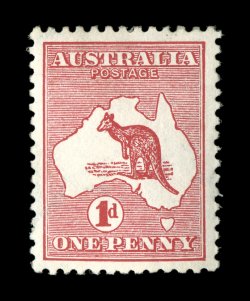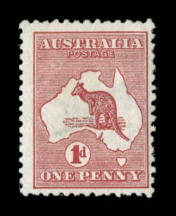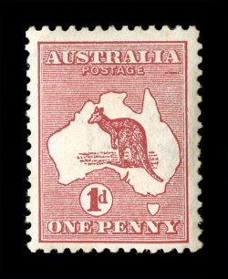 122 og 2aa image#2aa, 1p Red, Die I, watermark sideways, crown pointing to the right, particularly well centered, o.g., relatively lightly hinged, very fine; a choice example of this very scarce stamp (A$1,500). (Image) Est. 750-1,000