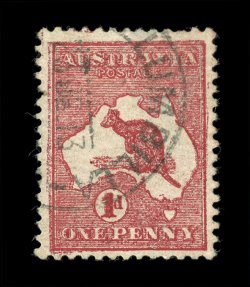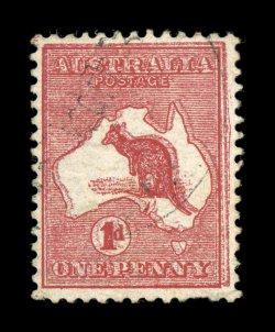 136 4 var. image#4 var., 1p Red, Die IIA, forged double print, handsome used example of this masterful forgery created by chemical transfer, showing a very pronounced double print, manufactured in 1927, small perf. flaw at left, six examples have been reported showing different patterns of doubling (incorrectly identified in the ACSC as #3ca - footnote #5; A$1,250). (Image) Est. 500-750