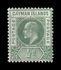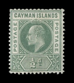 2098 og S.G. #8a imageS.G. #8a, 1905 1/2p Green, dented frame variety, position L 1/6, an exceptionally well centered mint single, fresh with bright color, o.g., barest trace of hinging, choice very fine; only 258 printed (Scott #8 var.). (Image) £150