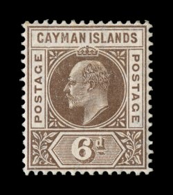2108 og S.G. #11a imageS.G. #11a, 1905 6p Brown, dented frame variety, position L 1/6, lovely mint single, rich color and exceptionally well centered, o.g., very lightly hinged, extremely fine; a rare variety with only 74 stamps printed (Scott #11 var.). (Image) £300