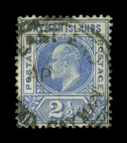 2111 O S.G. #10 imageS.G. #10, 1905 2 1/2 Orange, used single with large portion of the "East End/Cayman Islands/AP" double circle c.d.s. without year date as normally found, the rare Type 1 pmk. of this small post office, a fairly nice strike that is easily identified, very fine; little mail was posted out of this post office, the vast majority being done in the period of the Type 2 pmk., which is also very scarce, but the Type 1 cancel is one of the rarest of Cayman Islands postmarks on or off cover (Scott #10). (Image) Est. 150-200