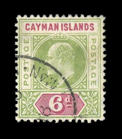 2151 O S.G. #14a imageS.G. #14a, 1907 6p Olive and rose, dented frame variety, position L 1/6, a seldom seen used example with a portion of a 1908 Georgetown Type 4 pmk., well centered, bright colors, very fine; an exceptionally scarce used example of the Glover flaw (Scott #14 var.). (Image) £600