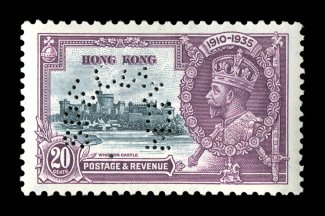 3202 ogS S.G. #133s-36s imageS.G. #133s-36s, 1935 3c-20c Silver Jubilee, with perforated "Specimen" cplt., well centered, exceedingly fresh colors, o.g., lightly hinged, very fine (Scott #147S-50S). (Image) £425