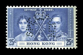 3203 ogS S.G. #137s-39s imageS.G. #137s-39s, 1937 4c-25c Coronation, with perforated "Specimen" cplt., deep colors on bright paper, o.g., lightly hinged, very fine (Scott #151S-53S). (Image) £225