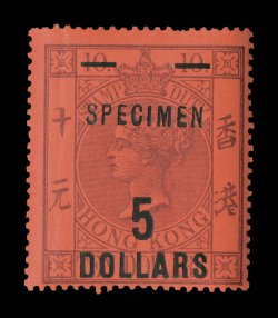 3208 ogS S.G. #F4s/11s imageS.G. #F4s-5s, F9s, F11s, 1891-1902 $1.00-$5.00 Postal fiscals, with overprinted or handstamped "Specimen", attractive colors, o.g., first three with minor flaws (mainly natural gum creases), fine-very fine appearance (Scott #57S-58S, 60S, 67S). (Image) £790