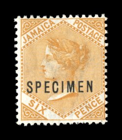 3219 ogS S.G. #89 footnote imageS.G. #89 footnote, 1921 6p Abolition of Slavery, wmk. multiple CA, with overprinted "Specimen", attractive colors, part o.g., a fine example of this unissued stamp (Scott #87 footnote). (Image) £700