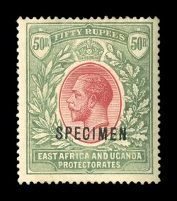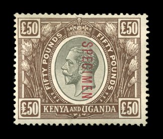 3233 ogS S.G. #103s imageS.G. #103s, 1922 £50 Black and brown, with overprinted "Specimen", lovely rich colors and strong impressions, o.g., lightly hinged, very fine (Scott #41DS). (Image) £600