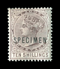 3240 ogS S.G. #27s-29s imageS.G. #27s-29s, 1886 2/6 to 10/- Queen Victoria, with overprinted "Specimen" cplt., exceptionally rich fresh colors, o.g., very fine (Scott #33S/37S). (Image) £425