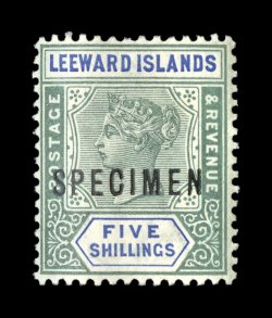 3242 ogS S.G. #1s-8s imageS.G. #1s-8s, 1890 1/2p to 5/- Queen Victoria, with overprinted "Specimen" cplt., exceedingly fresh, with strong rich colors, o.g., lightly hinged except 6p with h.r., very fine (Scott #1S-8S). (Image) £200