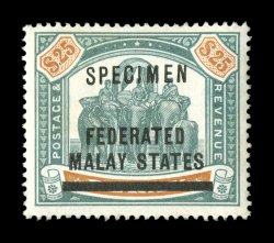 3250 ogS S.G. #26s imageS.G. #26s, 1901 $25.00 Green and orange, with overprinted "Specimen", exceptionally fresh, with bright color on clean white paper, o.g., lightly hinged, very fine (Scott #37S). (Image) £275