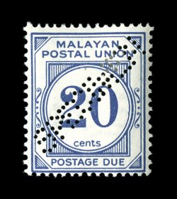 3252 ogS S.G. #D1s/13s imageS.G. #D1s-6s, D10s, D13s, 1936-49 1c-50c Postage dues, with perforated "Specimen", bright and fresh, o.g., lightly hinged, 4c with light toned spot, fine-very fine (Scott #J7S-12S, J16S, J19S). (Image) £375