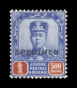 3254 ogS S.G. #89s-102s imageS.G. #89s-102s, 1918-20 2c-$10.00 Sultan Sir Ibrahim, with overprinted "Specimen" cplt., lovely bright colors, o.g., lightly hinged, 21c with small ink mark on face, still a very fine set (Scott #87S-100S). (Image) £475