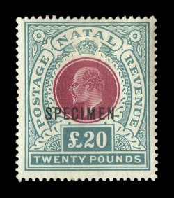 3305 ogS S.G. #127s-46s imageS.G. #127s-46s, 1902-03 1/2p-£20 King Edward VII, with overprinted "Specimen" cplt., the £5 additionally overprinted "Ultramar", o.g. except £5 no gum, fine-very fine (Scott #81S-100S). (Image) £1,050