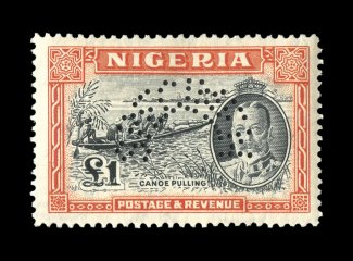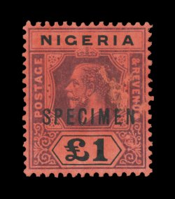 3316 ogS S.G. #1s-12s imageS.G. #1s-12s, 1914-29 1/2p-£1 King George V, with overprinted "Specimen" cplt., including two shades each of the 3p, 4p, 1/-, 5/- and 10/- values, for a total of seventeen stamps, o.g. except £1 no gum, one 10/- with small crease, £1 with facial scuffs, fine-very fine appearing (Scott #1S-12S). (Image) £563