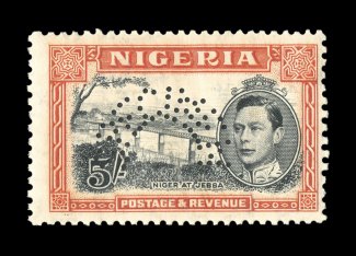 3319 ogS S.G. #49s-59s imageS.G. #49s-59s, 1938-51 1/2p to 5/- King George VI, with perforated "Specimen" cplt., attractive colors, o.g., some h.r.'s, fine-very fine (Scott #53S-64S). (Image) £250